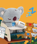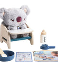 • Interactive plush koala, interactive milk bottle, baby high chair, feeding bowl, spoon, brush, diagnostic card