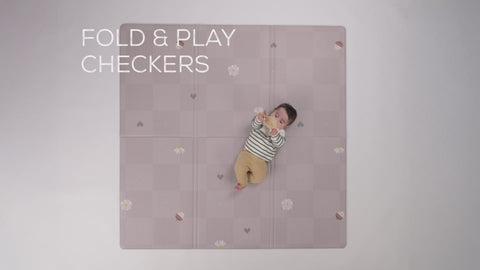 The Taf Toys Fold & Play Checkers Mat is a luxurious, dense foam mat with a modern neutral design, ideal for safe and comfortable play at home or on the go.