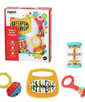 A colourful gift set featuring a Mini Cage Bell, Baby Maraca, Clip Clap, and the bestselling Rainboshaker. Designed for early rhythm exploration, this set helps develop fine motor skills and sensory awareness. Cascading beads create engaging sounds and visual effects for interactive play.