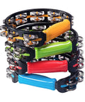 A solid, lightweight tambourine designed for percussionists of all levels. The innovative hollow handle acts as a resonator box, allowing pitch adjustment for high and low jingling effects. Internal shock absorbers reduce wrist impact for a comfortable playing experience.