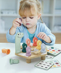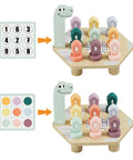“What colour is the 4? - The 4 is green!” With the HAPPY DINO TWIST educational game by TOPBRIGHT, children aged 36 months and over immerse themselves in the world of colours and numbers. Little explorers screw colourful lids onto the back of a cheerful dinosaur and learn about colours and numbers in a playful way. The colourful screw-on lids are numbered from 1 to 9. Task cards printed on both sides make learning twice as much fun! On one side, kids discover exciting colour patterns that they recreate with the lids on the dinosaur's back. This not only trains colour recognition, but also encourages creative thinking. The other side of the cards continues with numbers: Here, little ones practise counting in a playful way by recreating the matching number pattern. The game's clever screwing mechanism helps children to develop their fine motor skills and at the same time promotes their cognitive abilities. While the kids turn the colourful bottle caps, they train their hand-eye coordination and have lots of fun at the same time.