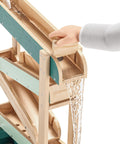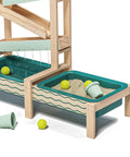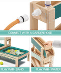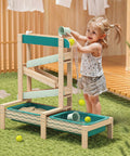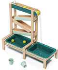 How does water flow? How does it change its course when obstacles are in its way? The Water Track by TOPBRIGHT turns every summer day into an adventure for children aged 36 months and older. The outdoor water play set has four tracks down which the water flows, encountering obstacles that can be adjusted individually and guided through openings. The two large basins at ground level can be filled with water or sand – perfect for splashing, playing in the mud, and building on the balcony, terrace, or in the garden. A special highlight: when children open the obstacle in the top track, a waterfall is created that falls into the outer basin. A garden hose can be connected to the top track so that the water track quickly fills with water. The lowest track has small holes that create a fascinating water curtain – ideal for playing and marvelling. Made of weather-resistant sustainable fir wood, the Water Track is robust and durable. While playing, children discover the laws of water in a playful way, develop fine motor skills and train their logical thinking.