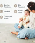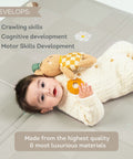 The Taf Toys Fold & Play Checkers Mat is a luxurious, dense foam mat with a modern neutral design, ideal for safe and comfortable play at home or on the go.