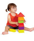 Snap together interlocking building blocks that are smooth, flexible and easy to stack. Safe from 6 months up with no hard plastic pieces to crack off or step on. Each block is richly coloured, durable and washable, with assorted shapes and sizes to build with.