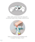 An innovative travel toy suitable for rear facing babies in the car! This combination of activity pad with baby safe mirror will not only keep babies amused on journeys, it also helps provide peace of mind for parents when they can't be next to their precious little ones.